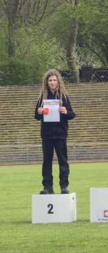 Mit 10,59 sec wurde Tobias Dritter. Alina Kretschmar sprintete mit 9,17 sec über 50 m die nächste Bestmarke. Seinen "Hausrekord" stellte Lias Weinhard auf der gleichen Strecke mit 8,98 sec. ein und holte sich dann "Bronze" bei der Siegerehrung ab.