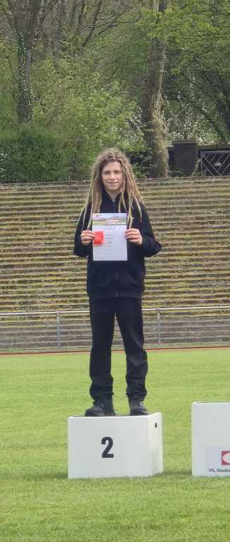 Tobias Glowacki (M14) startete erstmals über 100 m, sprintete 13,73 s und wurde damit Dritter. Im Weitsprung belegte er mit 4,55 m Platz vier.